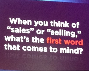 Queue the negative responses – wow. We’ve got a bias against sales. There was a 4 to 1 ratio of negative to positive responses to the question. Since we’re all selling, this is pretty disturbing. Pink pointed out two key features of today’s sales world: